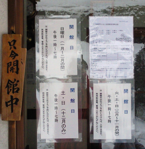201101/30 友愛(笑) お出かけ 0 えーっと。 決して民●党の掲げる政策とは関係ありません(笑) 前回乗って三週間経過の愛機ZZR1400SE。 シートカバーすら外していませんでしたが やはり今日も乗れそうにないので。 取り敢えず 暖機だけでも。 奥さんの愛機と二台一緒に(笑) 午後から四輪で奥さん実家に緊急帰省。 国道11号・県道23号・国道33号と走り。 三坂峠(標高720m)を駆け上がる。 正月前後は30cmほどの積雪が有りましたが。 それから四週間が経過。 路肩には雪が残っているものの。 除雪も入っているので、路面は全く問題なし。 約90kmを移動。 13時過ぎに奥さん実家到着。 二時間ほどだらだら。 昼食戴いたり、お菓子やら飲み物やら戴いたり。 いかん、やはり上げ膳据え膳になるぅ(笑) 15時過ぎに移動。 山際は銀世界です(苦笑) 溶けないのですね、やはり 「ふもと温泉・ふもと友愛館」 この時期は日曜のみの営業。 雨が降ろうが、雪が降ろうが、営業しています♪ この時間、他の入浴客は居らず、貸し切り状態 ヌルヌルのスベスベの、しっかり成分の良質な天然温泉! めっちゃ暖まります ただ、この日は水道管が凍結していたとかで。 シャワーは使えませんでした 小僧たち 入浴後、雪の舞う中帰宅しました。 本日は昼間は晴れ間も見えていましたが。 夕方以降は、奥さん実家近辺より、自宅近くの方が雪が激しかったです。 明日は積もるのかしら? [0回]PR