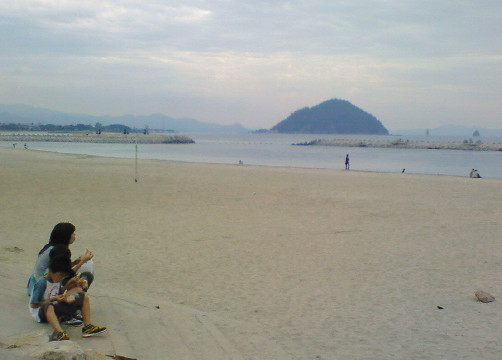 正面にある海水浴場の砂浜へ移動。