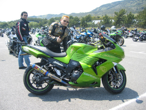 何だか見覚えのある緑のZZR1400が開場入りしてきて。