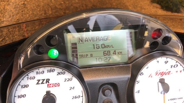 いよ西条IC出口で信号待ちしているZZ-R1100発見。