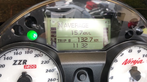 いよ西条IC出口で信号待ちしているZZ-R1100発見。