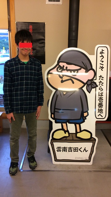 武市半平太先生像の前でパチリ。