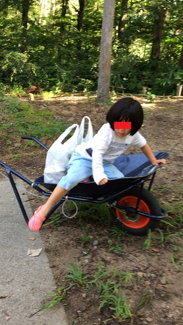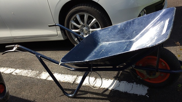 一輪車で荷物を駐車場まで運びます。