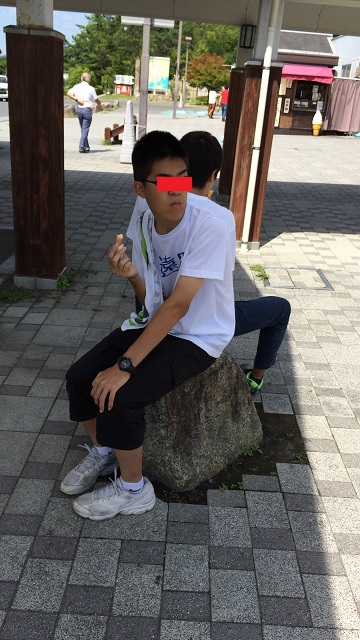 ソフトクリームを食らう小僧達。